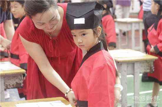 兩個(gè)校區(qū)近800多名一年級(jí)新生在老師和家長(zhǎng)的見證下,通過“正衣冠”、“拜孔子”、“吟誦經(jīng)典”、“朱砂啟智”、“擊鼓鳴志”、“啟蒙描紅”、“茶敬師親”、“許愿留念”等八個(gè)活動(dòng)程序,上演了一場(chǎng)具有傳統(tǒng)文化的“開筆禮”。