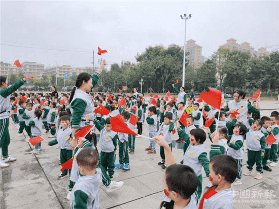 孩子們揮舞著五星紅旗祝福祖國(guó)71歲生日