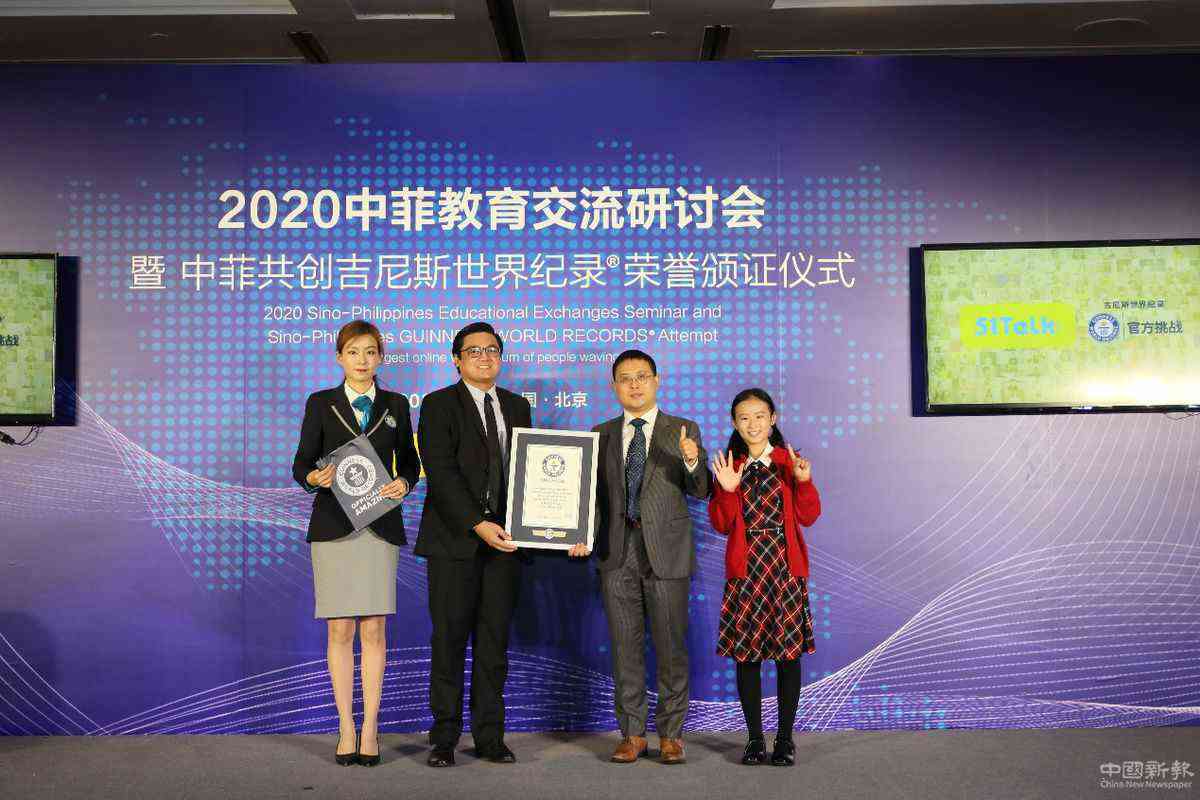 中國日報(bào)網(wǎng)10月16日電(孫若男)10月16日,2020中菲教育交流研討會暨中菲共創(chuàng)吉尼斯世界紀(jì)錄榮譽(yù)頒證儀式在京落幕。中國駐菲律賓大使黃溪連、菲律賓駐中國大使羅馬納及其三等秘書艾倫、51Talk創(chuàng)始人兼CEO黃佳佳、吉尼斯紀(jì)錄見證官侯穎等人一同出席了此次研討會。