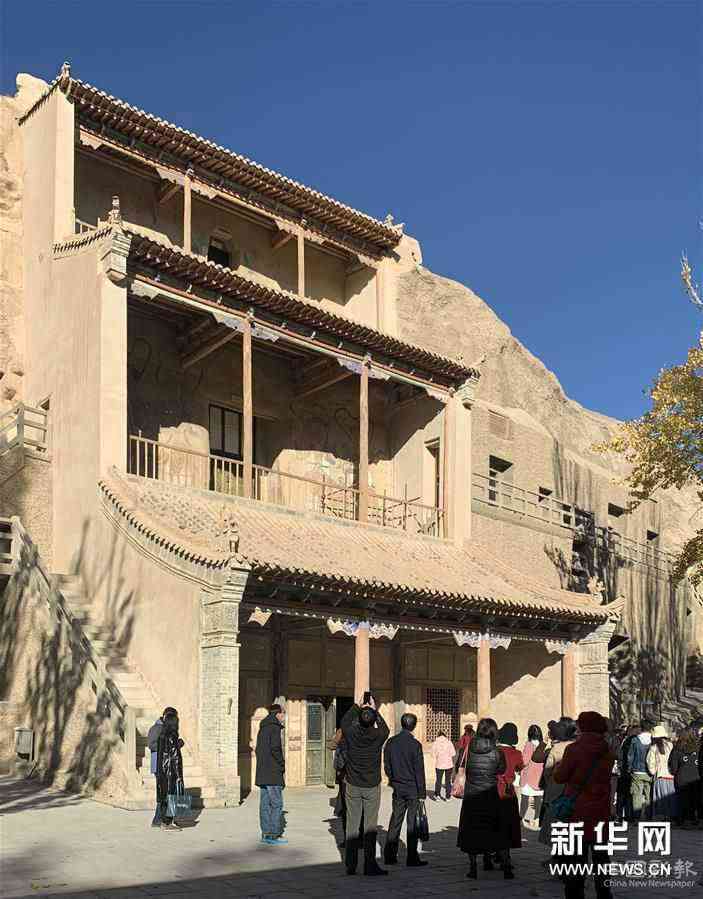 11月9日,游客在莫高窟三層樓前駐足。新華社記者 張玉潔 攝