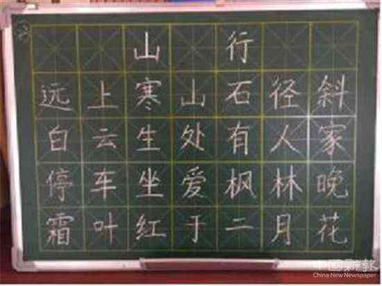 每人一塊小黑板,一根白粉筆,一首由教師代表抽取了一篇唐代杜牧的七言古詩(shī)《山行》,集體限時(shí)創(chuàng)作完成。