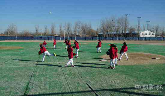 12月16日,北京市通州區(qū)漷縣鎮(zhèn),來自四川大涼山的女孩們正在進行棒球訓練。郎超凡/攝