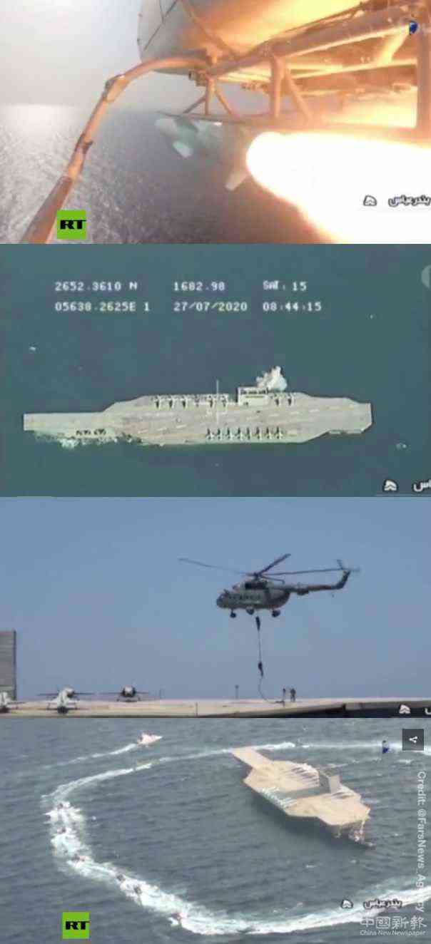 演習(xí)過程中,一艘伊朗攻擊直升機發(fā)射導(dǎo)彈擊中“航母”后,索降突擊小隊至甲板上。同時,大批武裝快艇將“航母”團(tuán)團(tuán)圍住。伊朗在4月成功發(fā)射的第一顆軍事衛(wèi)星“努爾一號”,全程參與了對本次演習(xí)的監(jiān)視。