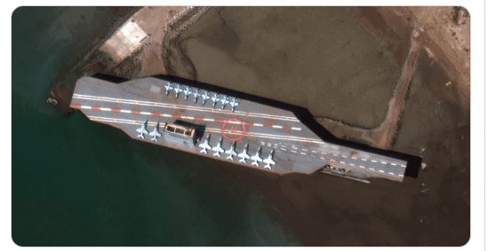 伊朗軍演使用的美航母模型(俄羅斯衛(wèi)星通訊社)