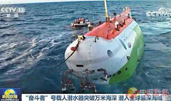 中國首艘萬米級載人潛水器“奮斗者”號昨日成功在西太平洋馬里亞納海溝坐底科考,刷新其在10月27日于此地創(chuàng)造的10,058米中國載人深潛紀錄,坐底深度10,909米。分析人士稱,此舉彰顯中國人最深海底探險的綜合技術(shù)實力,躋身國際深海底探險的領(lǐng)先行列。