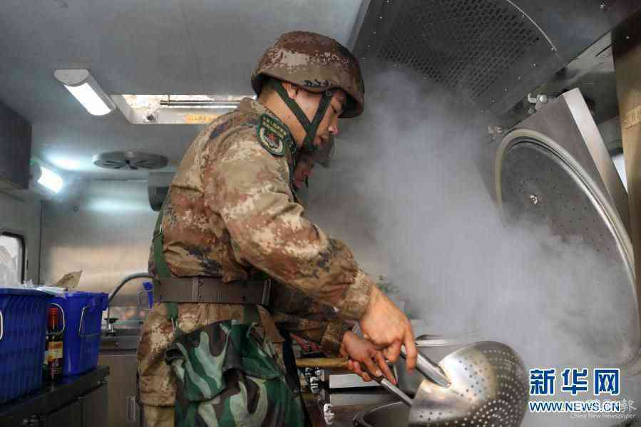 11月29日,飲食保障隊(duì)參賽隊(duì)員在野戰(zhàn)炊事車內(nèi)加工制作野戰(zhàn)快餐。新華社發(fā) 呂冀周 攝 圖片來(lái)源:新華網(wǎng)