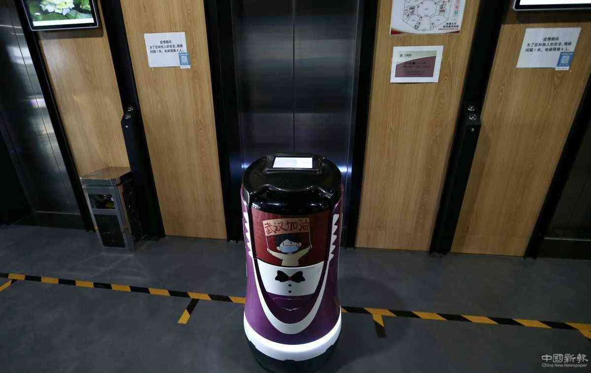 3月20日,云跡科技的“跑腿機(jī)器人”在等待電梯。疫情期間,該科技公司的機(jī)器人和配套產(chǎn)品已經(jīng)向武漢火神山醫(yī)院、部分隔離酒店捐贈(zèng)并陸續(xù)上崗。(中國日?qǐng)?bào)記者 鄒紅 攝)