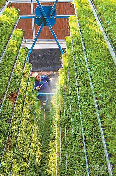 江西省吉安市吉水縣以科技引領(lǐng)現(xiàn)代農(nóng)業(yè),大力發(fā)展智慧農(nóng)業(yè)、訂單農(nóng)業(yè),推廣標準流程化育秧管理、機械化耕作收割,在農(nóng)田托管、大戶種植模式方面不斷嘗試,用農(nóng)業(yè)科技化促進當?shù)剞r(nóng)民增收脫貧。圖為吉水縣醪橋鎮(zhèn)一家智能育秧中心內(nèi),農(nóng)技人員正在為秧苗噴灑消毒液。羅建榮/攝