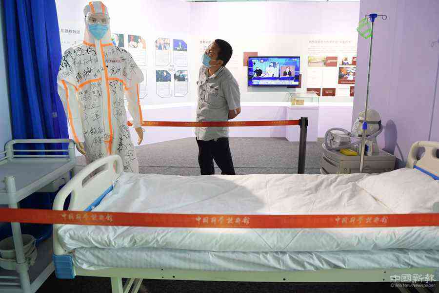 6月2日,觀眾參觀“大醫(yī)精誠(chéng) 無(wú)問(wèn)西東——中西醫(yī)結(jié)合抗擊新冠肺炎紀(jì)實(shí)展”,該展覽還原了“方艙醫(yī)院病區(qū)一角”。 中國(guó)日?qǐng)?bào)記者 魏曉昊 攝