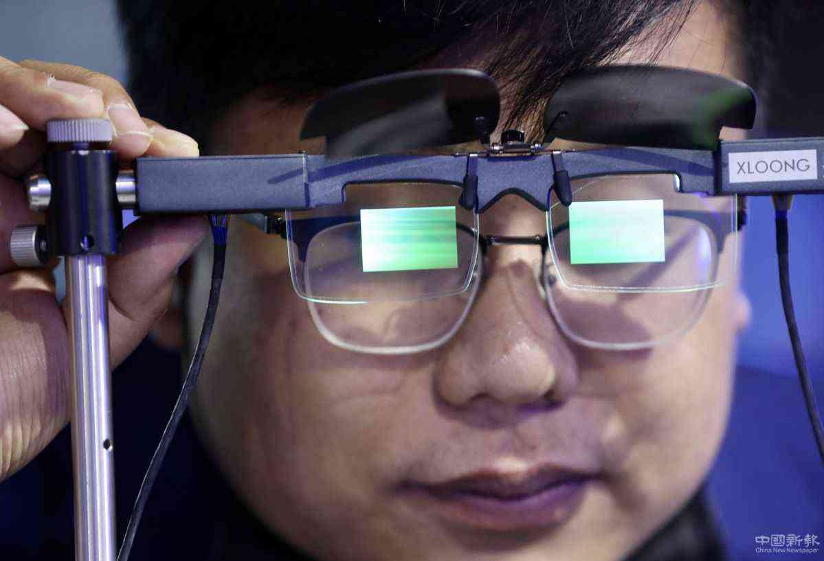 11月1日,參觀者體驗(yàn)AR增強(qiáng)現(xiàn)實(shí)智能眼鏡。(中國日?qǐng)?bào)記者 鄒紅 攝)