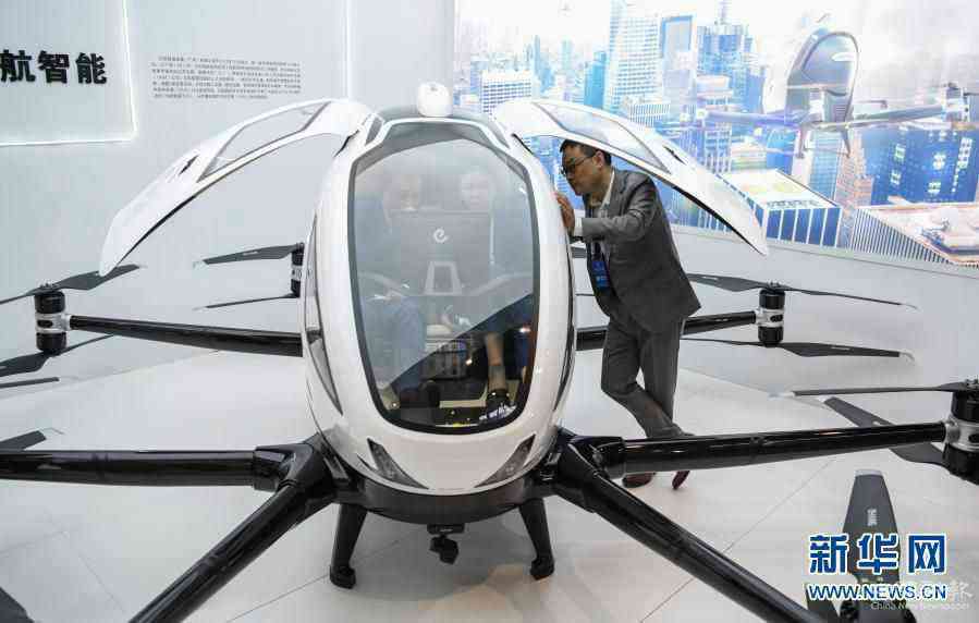 11月19日,參觀者了解一臺自動駕駛飛行器。新華社記者 程敏 攝