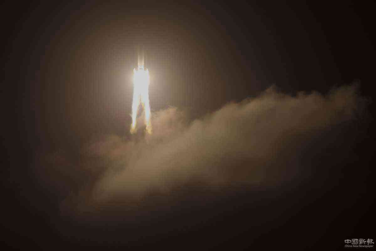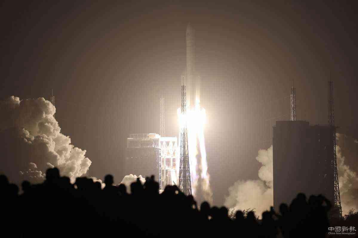 11月24日4時30分,長征五號遙五運載火箭在中國文昌航天發(fā)射場點火升空。中國日報 徐京星 攝