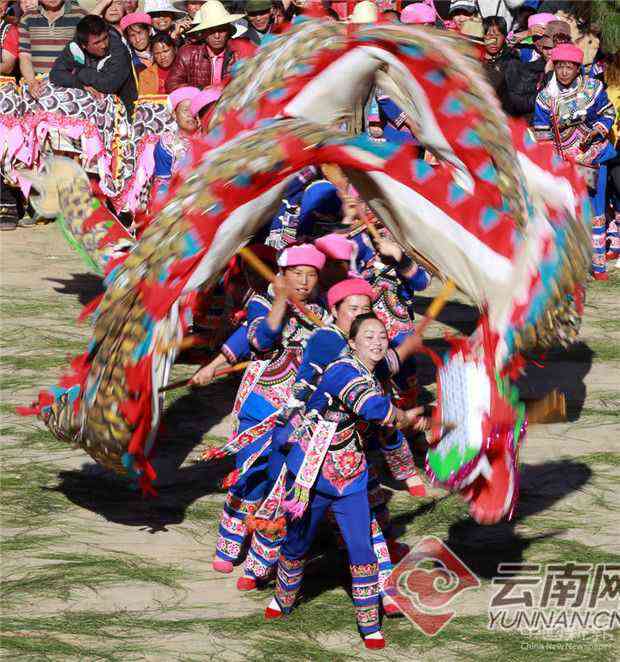 開(kāi)新街,這一傳統(tǒng)節(jié)日流傳于峨山縣塔甸、富良棚一帶,節(jié)期定在每年春節(jié)(正月初二)后的第一個(gè)趕集日。節(jié)日當(dāng)天,十里八鄉(xiāng)的彝族群眾都會(huì)穿著節(jié)日的盛裝,吹奏著過(guò)山號(hào),耍著龍燈,跳著花鼓舞,從各個(gè)寨子聚集到街子上,參加巡街表演、祭龍祭鼓等活動(dòng),祈求風(fēng)調(diào)雨順、五谷豐登、六畜興旺。與之同期舉行的文化活動(dòng)異彩紛呈,集市交易非?;钴S。