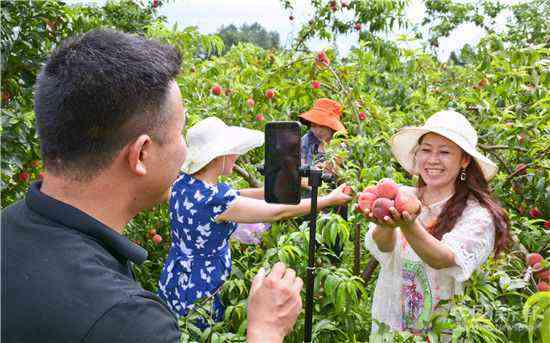中國新報(bào)訊(特約記者 彭林海 通訊員 鄭國華 攝影報(bào)道) 6月12日,新寧縣金石鎮(zhèn)宛旦平村落家塘桃園開園,崀山旅游網(wǎng)正在現(xiàn)場直播游客摘桃子、打糍粑。