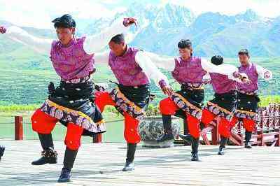 6月14日,在四川省甘孜州甘孜縣,能歌善舞的藏族群眾正在表演甘孜踢踏。本報(bào)記者閆匯芳攝