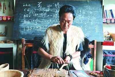 四川省阿壩州茂縣非遺傳習(xí)所,國(guó)家級(jí)非遺傳承人何玉金現(xiàn)場(chǎng)演示制作羌笛。本報(bào)記者?,摂z