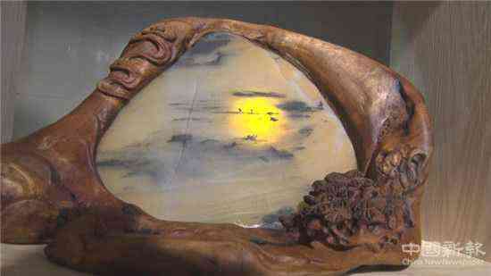 據(jù)館長楊煥騰介紹,作品“印象花園閣”,其形態(tài)與綏寧花園閣國家濕地公園極其相似,顯現(xiàn)出山水交織、漁夫捕魚的美麗畫卷。其材質(zhì)是綏寧巫水河特有的玉種黃蠟石,玉體金黃,晶瑩剔透。