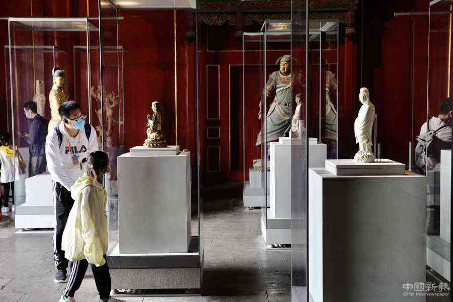 10月1日,游客在北京故宮博物院慈寧宮參觀雕塑文物。中國日報(bào)記者 姜東 攝