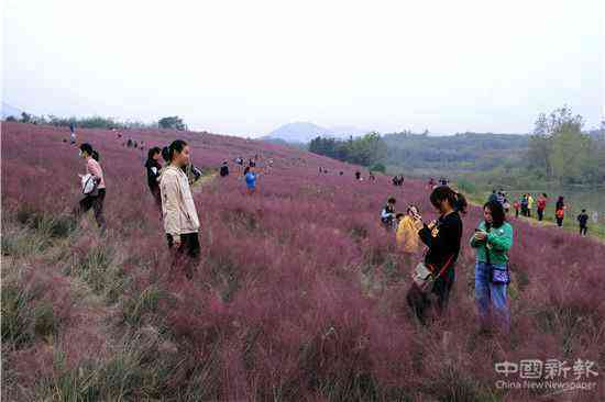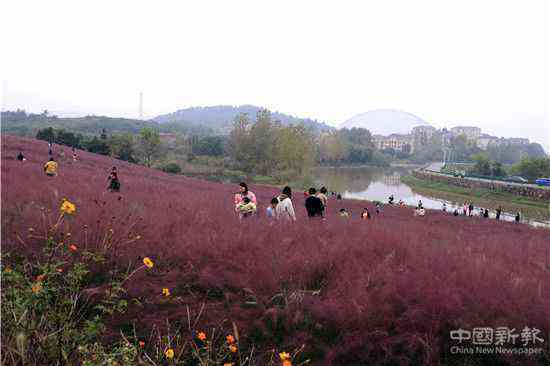2020年10月18日,安徽省合肥市廬江縣湯池鎮(zhèn)湯果公路舒廬干渠南側山坡,大批游客在近百畝的粉黛亂子草海旁觀光、留影,盡情享受秋日周末美好時光。 (巢志斌 攝影報道)