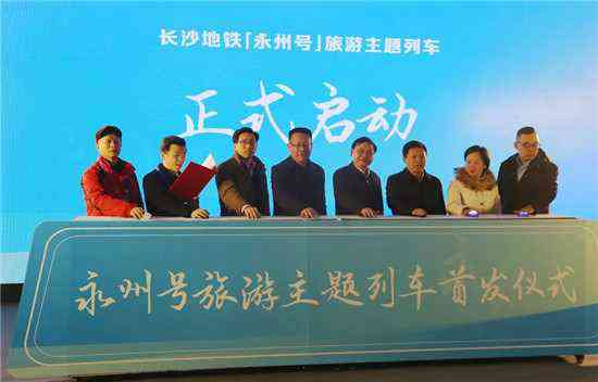 12月14日,長(zhǎng)沙地鐵“永州號(hào)”旅游主題列車啟動(dòng)儀式在長(zhǎng)沙地鐵4號(hào)線溁灣鎮(zhèn)站舉行。