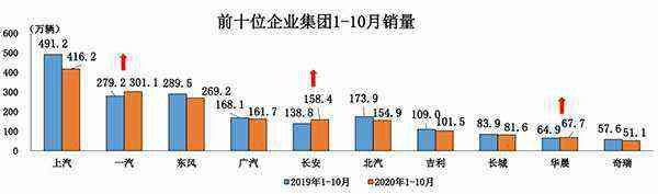 1-10月,汽車銷量排名前十位的企業(yè)集團銷量合計為1763.5萬輛,同比下降5.0%,占汽車銷售總量的89.5%,低于上年同期0.3個百分點。