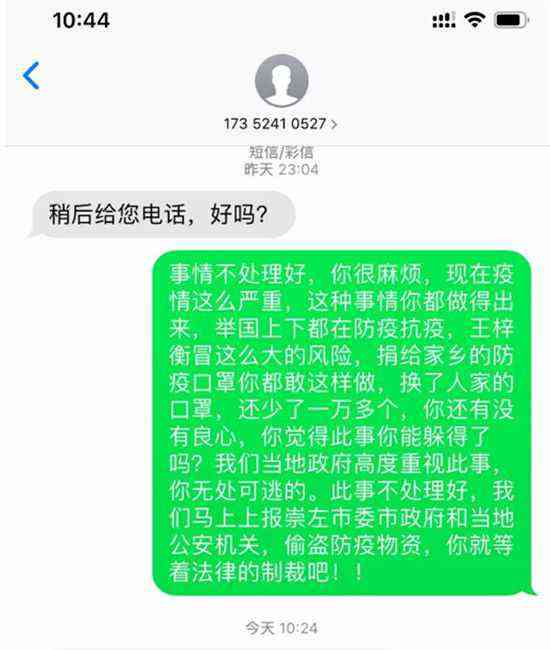 口罩是初六下午發(fā)貨的,初七到了國內(nèi)廣西憑祥。但幾天過去了,老家相關(guān)部門一直都沒收到貨。王梓衡急了,一問,御送物流以封城,車不準進不準出為由,告知王梓衡,貨物仍在廣西憑祥,沒有發(fā)出。
