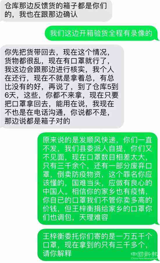 由于疫情嚴重,口罩成為緊缺之物,口罩也屢被“截胡”。王梓衡稱,做生意不能不講信用,更不能在目前這種情況下興風作浪,“截胡”客戶口罩,挪作他用。