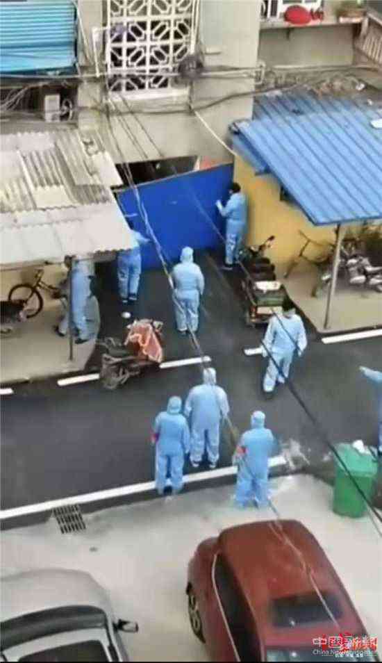 這則有15秒的視頻資料顯示,約10名身著防護(hù)服的工作人員出現(xiàn)在了小區(qū)里,其中兩人提著一塊藍(lán)色的板子,并很快將它貼墻,封堵了小區(qū)內(nèi)的一個(gè)單元門,封得嚴(yán)嚴(yán)實(shí)實(shí)。