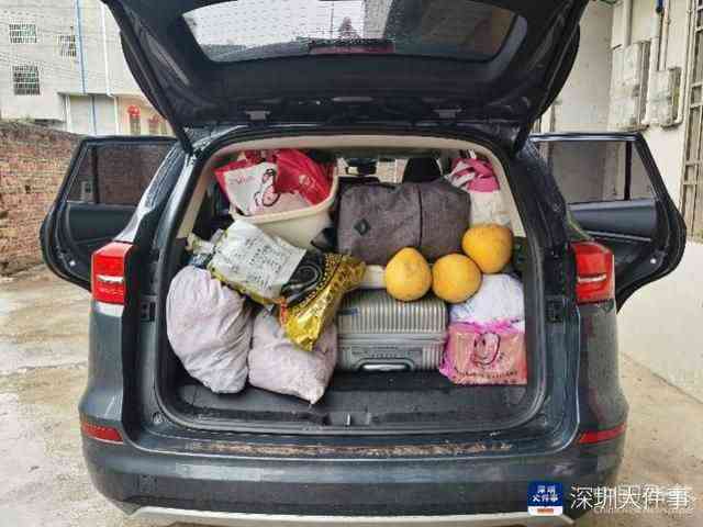 2月13日,林巖與堂弟終于決定回深。從家里帶的菜塞滿了堂弟的車尾箱。受訪者供圖