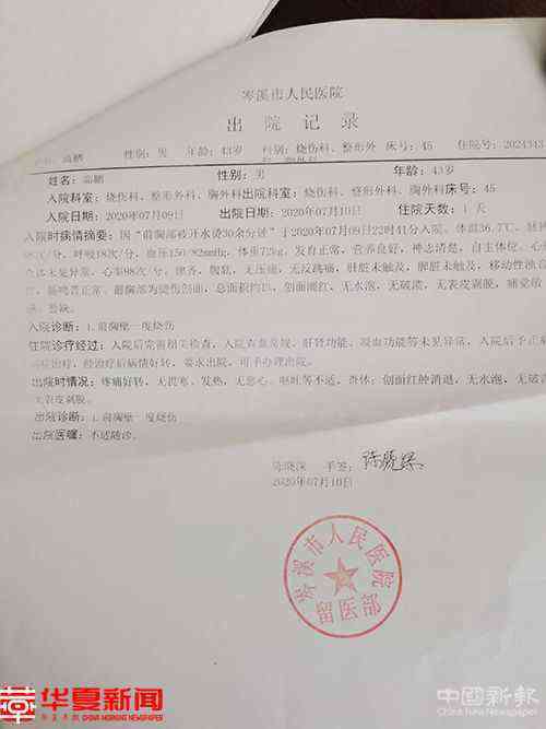 同時,冼宏偉將會議桌上幾個茶杯中近100度的開水連續(xù)潑向高鵬,導致高鵬被燙傷,后被醫(yī)生診斷“胸前壁一度燙傷”,華夏早報-燈塔新聞從醫(yī)院開具的診斷證明中看到了這一結論。
