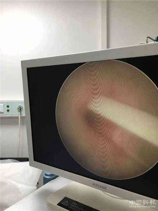 此時,通過顯示器確定體溫計已經(jīng)殘留在患者膀胱不多,稍有觸碰可能完全滑入腹腔,那就危險了。