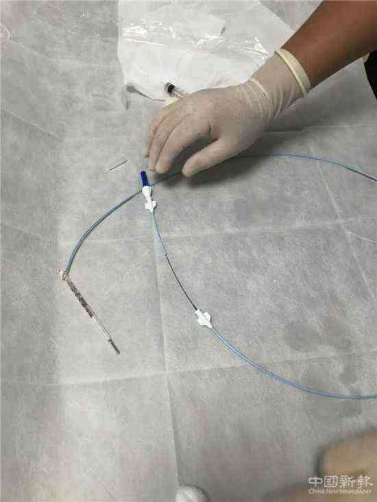 所以在接下來的每一步,都更加的小心翼翼。楊主任在血管外科舒向陽主治醫(yī)師的默契配合下,將抓捕器瞄準體溫計殘端,逐漸收緊抓捕器環(huán),死死套牢體溫計殘端后,試著向外牽拉體溫計……事實證明,這一方案是可行的,之后楊主任繼續(xù)往外牽拉體溫計,最終將其完整取出。