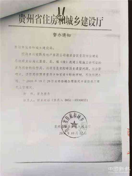 2016年10月12日、2018年6月25日貴州省城鄉(xiāng)和建設(shè)廳兩次向貴陽市住建局發(fā)出督辦通知。