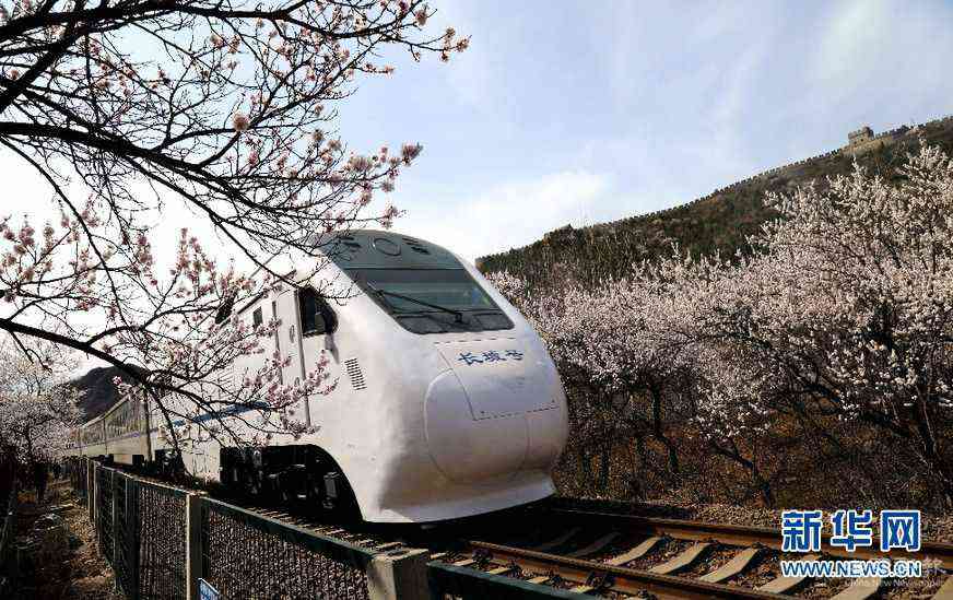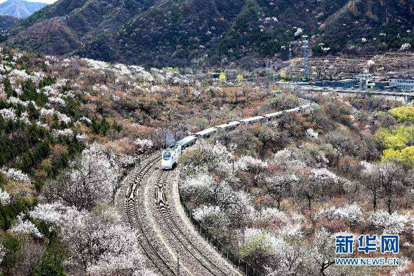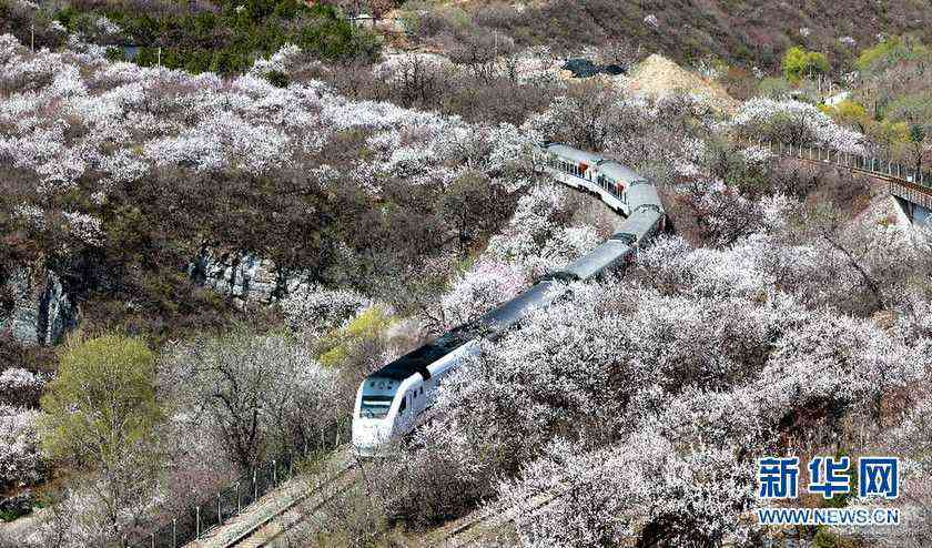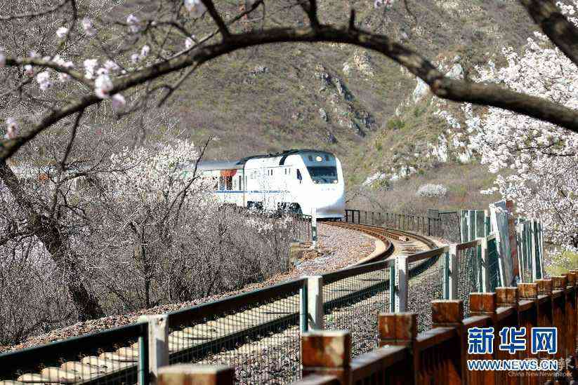 陽春三月,山花爛漫。作為“燕京八景”之一的“居庸疊翠”景觀壯美,置身其中令人心醉。春風(fēng)徐來,杏花滿枝,隨風(fēng)而動漫天花海,列車過處恍若仙境。