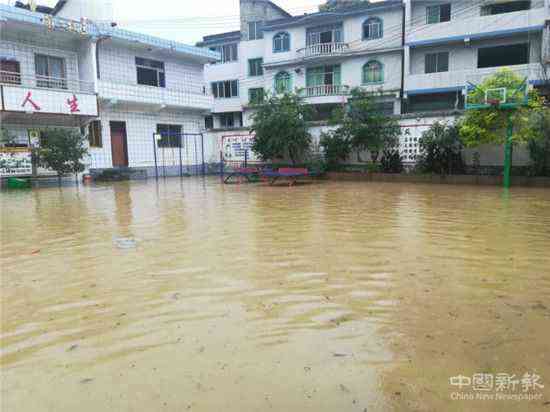 6月13日,暴雨突襲桐梓縣城,導致婁山關街道工農小學二校區(qū)操場及教室嚴重積水。