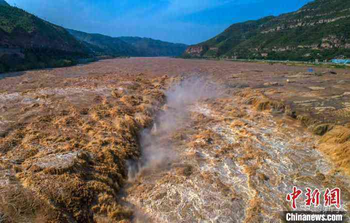 8月2日,受上游地區(qū)持續(xù)降雨和水庫(kù)泄洪影響,黃河壺口瀑布出現(xiàn)“水岸齊平”景觀。從空中俯瞰,主副瀑布連接形成綿延數(shù)百米的瀑布群,瀑布升騰起陣陣水霧,十里龍槽水位上升,如萬(wàn)馬奔騰、排山倒海。