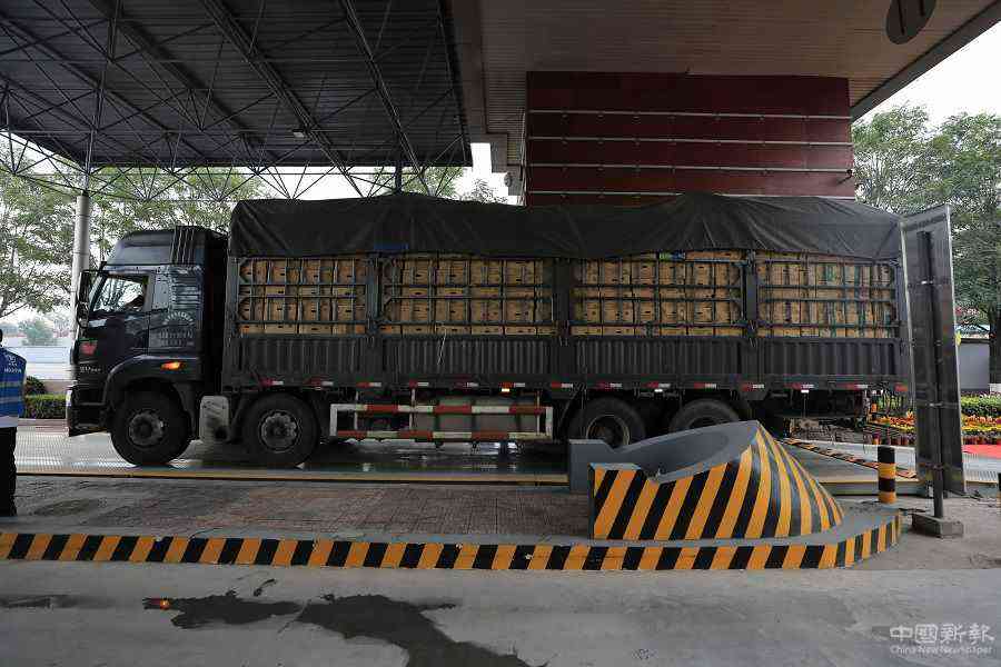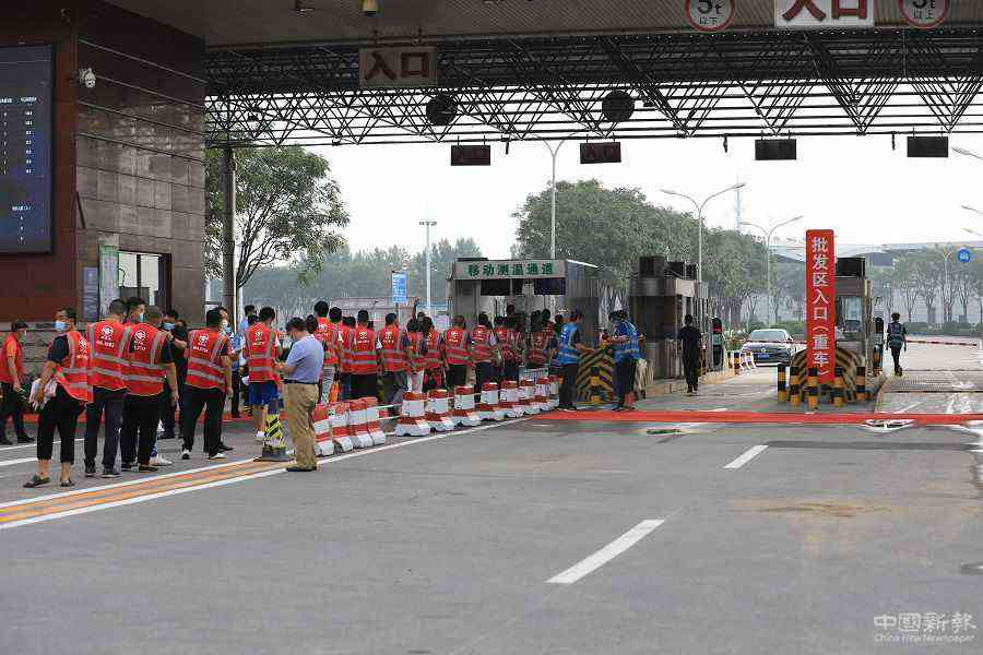 北京新發(fā)地市場(chǎng)復(fù)市后,第一輛進(jìn)入新發(fā)地批發(fā)市場(chǎng)的貨車正在稱重。(攝影:王成孟)