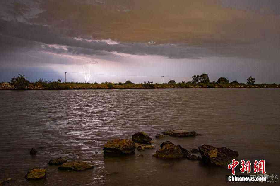 近日,希臘塞薩洛尼基迎來雷暴雨,天際出現(xiàn)多道閃電,場(chǎng)面壯觀。圖片來源:視覺中國(guó)