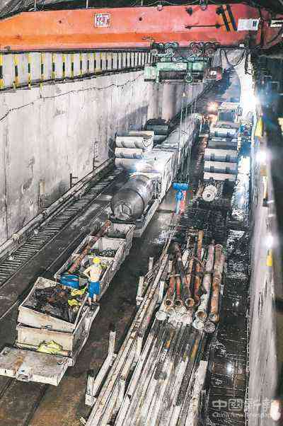 在隧道掘進過程中,因為不斷出汗,工人需要大量補水。