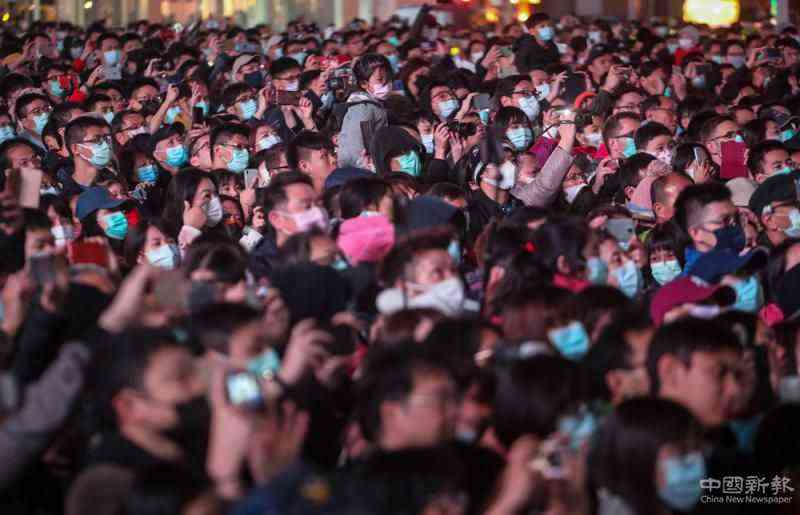 圖:臺北燈節(jié)開幕現(xiàn)場因受疫情影響,人潮較往年略減,但仍有不少民眾戴著口罩欣賞點燈\中央社