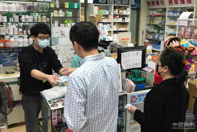 圖:臺灣實(shí)施買口罩實(shí)名制。圖為民眾排隊(duì)到藥局買口罩\中央社