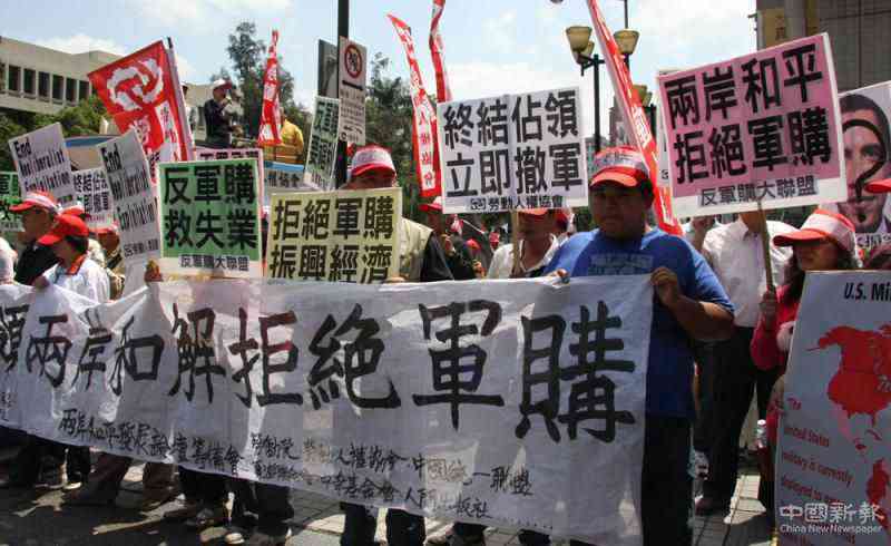 圖:臺灣民眾舉行集會,反對臺當(dāng)局向美國購買武器\資料圖片
