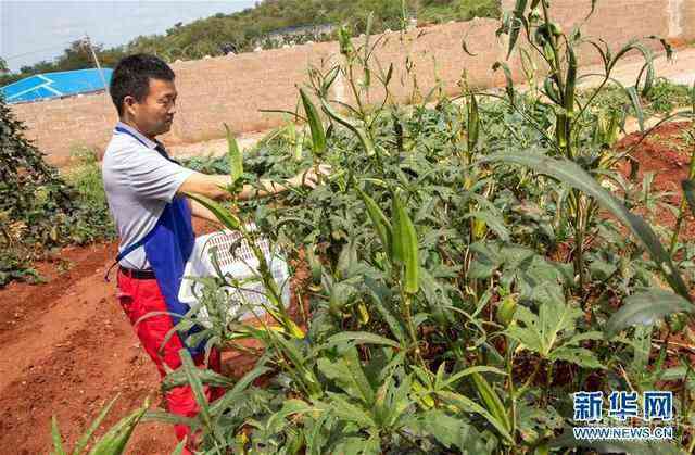 1月22日,在肯尼亞斯瓦克大壩工程營地,廚師在菜園內(nèi)摘取秋葵,為年夜飯做準(zhǔn)備。 新華社記者 張宇 攝