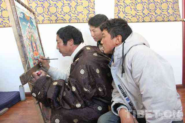 直到今天,父親雖然已經(jīng)離開(kāi)人世很多年了,曲扎依然堅(jiān)持子承父業(yè),手握畫(huà)筆,在偏遠(yuǎn)的山坳里為寺廟、信教群眾繪制唐卡、壁畫(huà)。曲扎的3個(gè)兒子桑昂然珠(18歲)、土丁格來(lái)(14歲)、桑丁特秋(9歲)都在家里跟隨他學(xué)習(xí)勉唐畫(huà)派技藝,在祖孫四代的不懈努力下,古老的勉唐畫(huà)派在類烏齊縣境內(nèi)得以代代相傳。