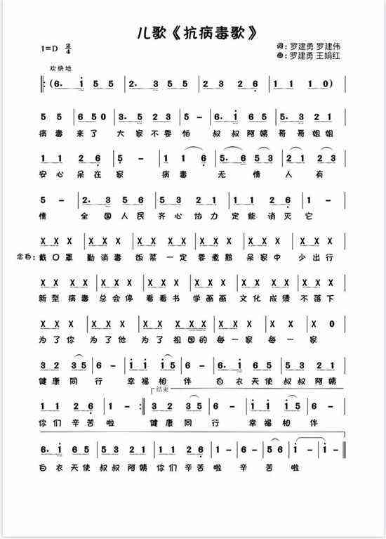 “全國這么多青少年,他們也是抗擊疫情隊(duì)伍的一分子,應(yīng)該有一首兒童歌曲為他們鼓勁加油。”終于,在2月8日上午,羅建勇和兩位作曲家把歌詞和曲譜一氣呵成寫了下來。