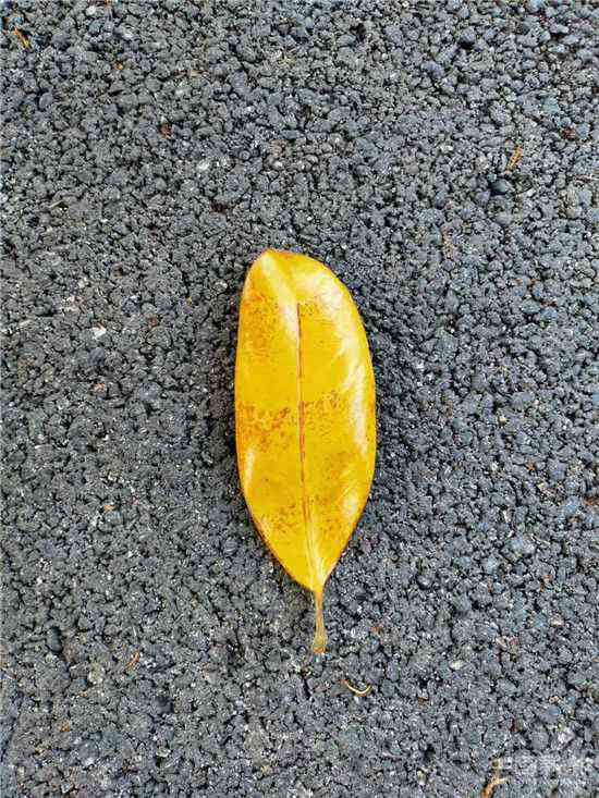 那是一片初夏的落葉,應(yīng)是白玉蘭葉子。葉子的一面呈金黃色,在陽光照射下閃著金光;另一面呈暗黃色,即使有陽光的照射,也很暗淡。