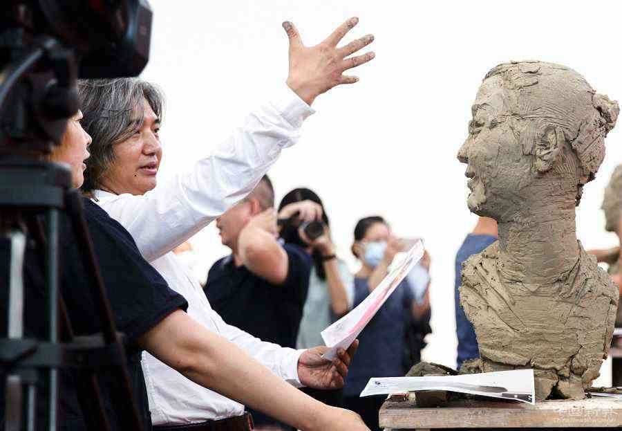 8月28日,全國政協(xié)常委、中國美術(shù)館館長、中國美術(shù)家協(xié)會副主席吳為山在現(xiàn)場指導(dǎo)雕塑家為黃文秀塑像。 中國日報(bào)記者 姜東 攝