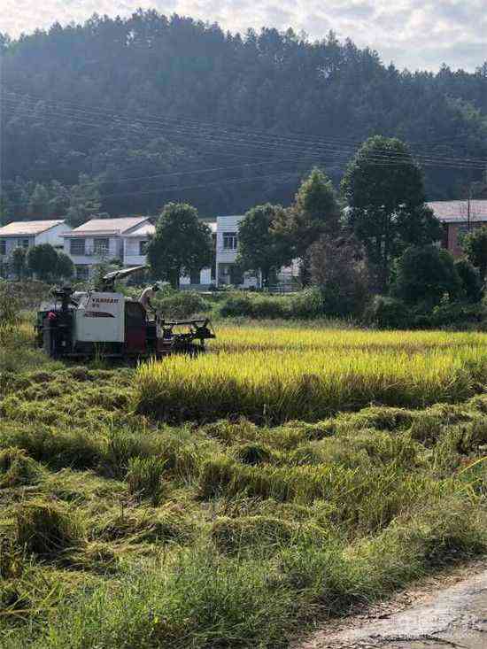 天終于放晴了,回了女兒外婆家一趟,連綿秋雨使不少稻子已經(jīng)發(fā)芽甚至倒伏在地。村民們放棄了休假,趕日頭搶收稻谷,收割機在田里歡快地作業(yè),割稻、打禾、吹穗,一條龍運轉(zhuǎn),金黃的稻谷從煙囪似的長管里嘩嘩流進三輪車廂,裝滿后便可直接拖回家,倒在曬墊里晾曬了。