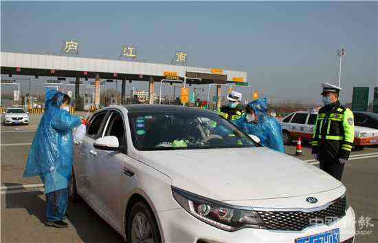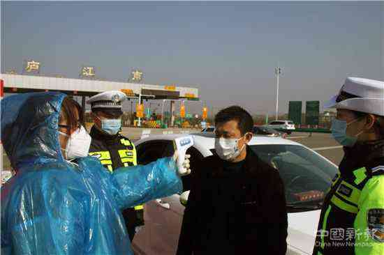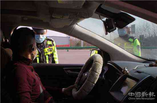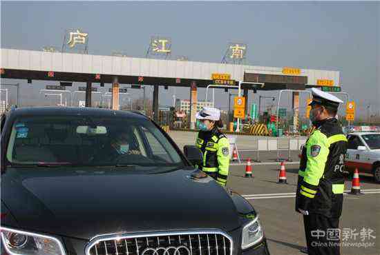 中國新報(特約記者 巢志斌 攝影報道)2020年2月1日,合銅黃高速廬江南道口,安徽省廬江縣公安局交通管理大隊民警邢慶壯、汪璐在“抗疫”檢測點(diǎn)執(zhí)勤。