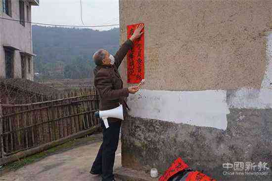 石馬山鎮(zhèn)川門村退休老校長、老黨員聶如良同志在家用紅紙書寫疫情防控宣傳標(biāo)語,在全村張貼,并用自備小喇叭,在村里宣傳防疫知識(shí)。